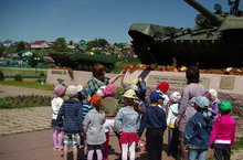 "Несколько десятков лет назад был такой же прекрасный, как и сегодня, июньский денёк. Светило солнце. Молодёжь с удовольствием танцевала на танцплощадках. Выпускники школ строили планы на будущее. Но утром 22 июня кончилась беззаботная жизнь. Планам и мечтаниям людей не суждено было сбыться. Именно в этот день - 22 июня 1941 года началась Великая Отечественная война. Фашистская Германия без объявления войны напала на нашу Родину. Первые дни войны были для нашей страны очень трудными. Погибло много людей. Вчерашние школьники, молодые мальчишки ушли на войну", - с таких слов , Лидия Николаевна, начала беседу с детьми. Дети слушали знаменитую песню "Вставай, страна огромная!", рассматривали репродукции, изображавщие начало Великой Отечественной; читали стихи. Завершилось меропритие песней "Пусть всегда будет солнце!". -