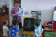 Зурлар төркемендә бүген чып-чынлап космик атмосфера иде. Иртәдән космик музыка астында балалар төркемгә килеп керделәр. Аннары космик корабльләргә утырып галәмгә юл алдык... Платнеталар белән таныштык, Юрий Гагаринга "сәлам биреп" уздык, Лего -конструкторлар ярдәмендә ракеталар, космик станцияләр төзедек, пластилин ярдәмендә ракеталар әвәләдек... Шулай ук космос турында кечкенә генә күргәзмә дә оештырдык.