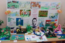 Ата-аналар белән берлектә “Габдулла Тукай иҗаты- рәсемнәрдә һәм кул эшләрендә” дигән темага ясаган рәсемнәр һәм кул эшләре күргәзмәсе оештырылды