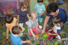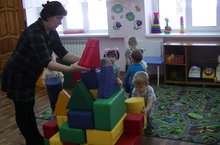 Во второй группе раннего возраста с детьми воспитатель постоянно проводит сюжетно- ролевые игры по ПДД, используя крупные мягкие модули