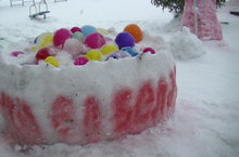 Коллектив тырышлыгы белән бакча территориясе буйлап төрле кар сыннары ясалды.