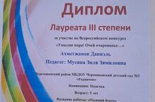 Наш воспитанник Ахметжанов Даниэль стал лауреатом lll степени за участие во Всероссийском конкурсе "Унылая пора! Очей очарованье..." Молодец Даниэль! Поздравляем.