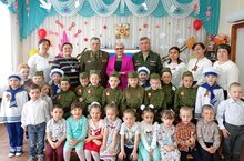 Безнең балалар бакчасында" генерал Молоствов Анатолий Петр улы һәм хәрби комиссар Иванов Сергей Василий улы белән очрашу узды. Балалар Җиңү көненә багышланган чара күрсәттеләр. Кунаклар балалар белән патриотик темага әңгәмә үткәрделәр.Балаларда югалып калмады бирелгән сорауларга бик теләп җавап бирделәр. Кунаклар белән аралашу аларга бик ошады. Чын хәрби комиссариатлар белән очрашудан соң егетләр армия сафларында хезмәт итәргә һәм Ватаныбызның лаеклы сакчылары булырга дигән карар килделәр.