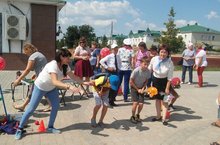 “Мәктәпкә җыенырга ярдәм ит!” акциясе кысаларында район үзәгендә үткән бәйрәм чарасында безнең тәрбиячеләр: Самарханова Венера Гайсеевна һәм Фартдинова Гөлсинә Рөстамовна катнашты. Алар башка балалар бакчалары тәрбиячеләре белән бергәләп уен мәйданчыклары оештырып, балаларны төрле уеннар уйнаттылар. Балалар бик рәхәтләнеп күңел ачтылар.
