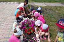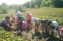 Җәй ахыры җитте исә, бакчада эшләр башлана.Зурлар төркеме балалары белән, яшелчә бакчасына чыгып апаларга суган җыюда булыштык. Кешенең табигатькә катнашы турында әңгәмә дә үткәрдек.