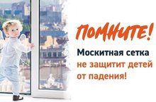 НИКОГДА не рассчитывайте на москитные сетки! Они не предназначены для защиты от падений! Напротив — москитная сетка способствует трагедии, ибо ребёнок чувствует себя за ней в безопасности и опирается, как на окно, так и на неё. Очень часто дети выпадают вместе с этими сетками.