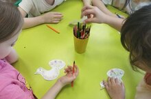 Целью занятия стало знакомство детей с перелетными птицами и их домиками, а также развитие мелкой моторики рук и творческого воображения. Перед началом работы педагог провела беседу о скворцах, их образе жизни.