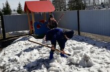 С наступлением весны в детском саду «Солнышко» начались экологические субботники. Сотрудники сада дружно вышли на весеннюю уборку территории и ворошение снега.