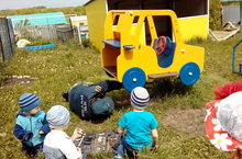 «Наблюдения за работой плотника на прогулке»Ребята тихо между собой обменивались впечатлениями, а мальчикам особенно было интересно. Они стали вспоминать о том, как помогали папе, кто – то из них даже решил подсказать Генадий Алексеевич, что по доске нужно с боку постучать молотком, и тогда доска легко станет на место. Плотник улыбаясь, хвалил ребят и благодарил за советы. Начиная работать инструментом, он рассказывал о нём ребятам.После завершения работы плотник разрешил подойти ребятам ещё ближе и даже осторожно взять в руки инструменты, напомнив о правилах безопасности.