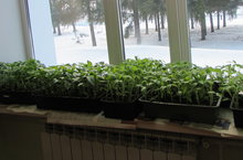 Ничуть не мешает рассадам на подоконниках морозная погода. Скоро рассады "поселятся" в теплицу.