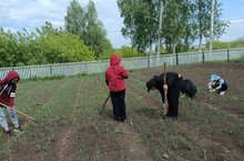 Продолжаются работы на пришкольном участке. Началась прополка чеснока, лука.