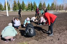 Начались весенние работы на пришкольном участке.