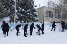 Уборка снега на прилегающей к школе территории. Школой принимаются меры по уборке снега, пешеходных дорожек, очистка крыш от накапливающегося на них снега и наледи на отведенных и прилегающих к учреждению территории.