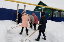 Тимуровская команда учащихся 8 класса постоянно помогают чистит снег жительнице Аткиной Марии Александровне (дети войны).