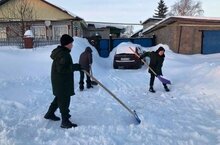 Тимуровская команда помогла расчистить снег возле дома, где живет семья военнослужащего - участника СВО.