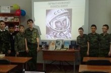 09 апреля 2015 года воспитанники 5 и 6 «А» класса совместно со своими военными воспитателями Мироновым Ю.Г. и Латыповой Л.Г. посетили Центральную районную библиотеку, где работники библиотеки провели внеклассное мероприятие, посвященное первому космонавту Ю.А. Гагарину.