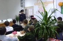 28 октября в цетральной районной библиотеке состоялась встреча воспитанников 8А и 8Б классов с атаманом Черемшанского казачества Пузырёвым Н.С.