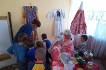 Балалар бакчасындагы мини -музейда .Балаларда татар милли киемнәренә ,бизәнү әйберләренә кызыксыну уяту.