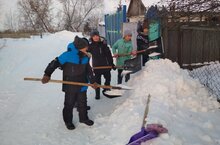 В рамках акции "Помощь детям войны" тимуровцы расчистили снег во дворе и около дома одинокой бабушки Вафиной Омогульсум. Дружной компанией очищать снег оказалось по силам и намного интереснее!