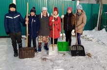 Тимуровцы помогали стариком, нуждающимся в помощи, а также одиноким людям. Они убрали территорию возле дома.