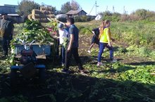 В этом году в нашей школе выращен богатый урожай овощей. Работники школы и учащиеся собрали с пришкольного участка картофель, свеклу, морковь, огурцы, помидор, лук. Для питания учащихся школы этих овощей хватит на весь учебный год. Выращенные за лето овощи разнообразят питание в школьной столовой .