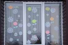 В рамках акции «Новогодние окна» ученики первого класса разукрасили окна своего класса разноцветными снежинками и новогодними фигурками.