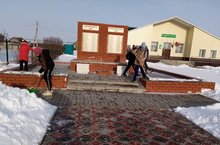 Без 6нчы сыйныф укучылары герой авылдашларыбызга куелган һәйкәл тирәсен кардан чистарттык