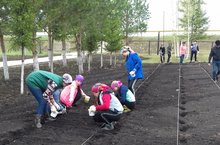 Мәктәп яны участогында язгы эшләр башланды. Бүлмәдә үстергән үсентеләр бакчага чыгарылды. Тиздән мәктәп яны участогын чәчәкләр бизәп торыр.