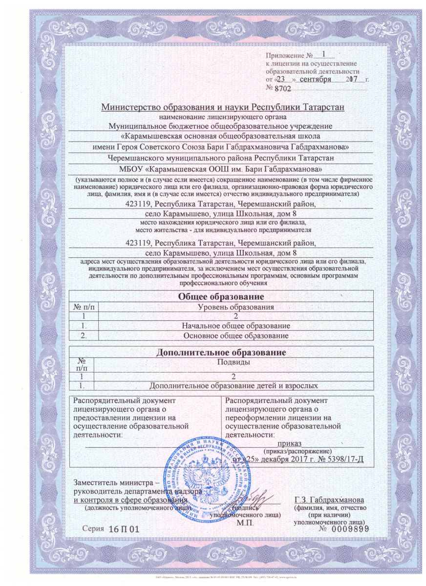 | Короткое название: | МБОУ "Карамышевская ООШ им.Бари Габдрахманова" |