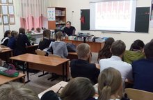 Для учащихся 9-11 классов учитель истории Миронов Александр Витальевич провел классный час, посвященный 100-летию комсомола.