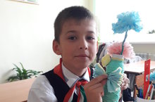Учащиеся 4 класса во время внеурочной деятельности "Школа мастеров" делали вазу с цветами на день пожилых людей.