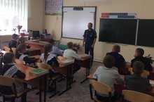 Старший инспектор Межрайонного отделения надзорной деятельности Фомин А. провел беседу с учащимися 1-5 классов.