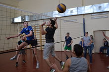 Прошла товарищеская встреча по волейболу между сборной командой студентов и сборной школы.