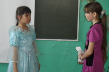 Девочки начальных классов поздравили мальчиков, проведя для них весёлые конкурсы. Фотогалерея.