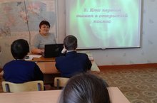 В память о Первом космонавте планеты Ю.А. Гагарине, в школе был проведён классный час в 6 классе.