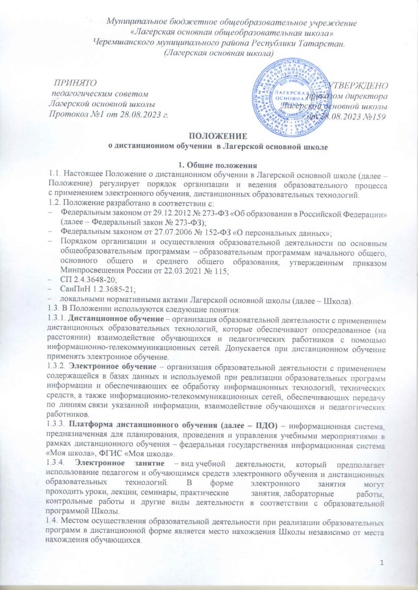 Положение о дистанционном обучении в Лагерской основной школе