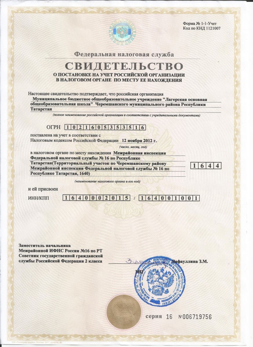 копия Свидетельства о постановке на учет в налоговом органе