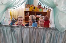 Безнең балалар бакчасында да театр көне узды. Тәрбияче балалар белән әңгәмә үткәрде: "Нинди театрлар була?", "Театрда үзеңне ничек тотарга", "Курчак театры булдыру тарихы". Балалар театр атрибутларын һәм әкият персонажларын кулланып, халык әкиятләре буенча драматизация уеннарын рәхәтләнеп уйнадылар. Театр артисты булу һәр балага да ошады.
