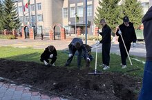Ребята дружно вышли на осенний субботник, чтобы пересадить ирисы.