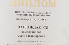 Замалтдинова Азалия призёр по татарскому языку. 10.02.2020