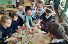 Очень интересно прошла сюжетно-ролевая игра "Мы идём в магазин". Ученики первого и третьего ряда-покупатели складывли в корзинку картинки с изображением различных продуктов. Ученики второго ряда-контролёры проверили содержимое корзин.