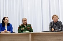 На встрече будущим выпускникам рассказали об особенностях профессий военного профиля. Были просмотрены видеопрезентации о высших военных училищах, разьяснены детям особые правила и требования при поступлении.