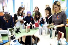 Бүген 6 а классы укучылары үзәк китапханәдә "Җиңү тәрәзәләре" акциясендә катнашты. Аннары "Бөек Ватан сугышы елларында мәдәният һәм сәнгать" темасына фильм-презентация карадылар.