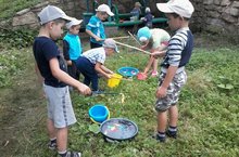 Тәрбияче Әлфинә Фазыл кызы чишмэгэ экскурсия оештырды. Бакча хезмәткәрләре балалар белән бергәләшеп чишмә тирәсен чүптән арындырдылар. "Табигатьне саклыйк" темасына әңгәмә үткәрелде. Соңыннан балалар "Балык тоту" уенын уйнадылар.