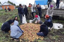 Сегодня учащиеся 5-11 классов и учителя провели субботник по уборке картофеля со школьного приусадебного участка.