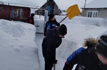 Учащиеся школы помогают пожилым людям села очищать от снега придворовые территории.