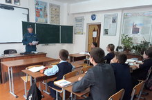 Сотрудник МЧС провел с учащимися урок по пожарной безопасности.