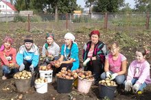 Работники школы и детского сада вышли на приусадебный школьный участок для уборки картофеля, несмотря на засушливую погоду урожай получился богатый .