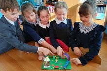 Сегодня обучающиеся 3 б класса (кл. рук. Плотникова В.Г.) работали в группах над проектом «Детская площадка».