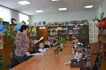 В 1а и 1б классах в библиотеке прошел библиотечный урок. "Библиотека, книжка, я -вместе дружная семья".